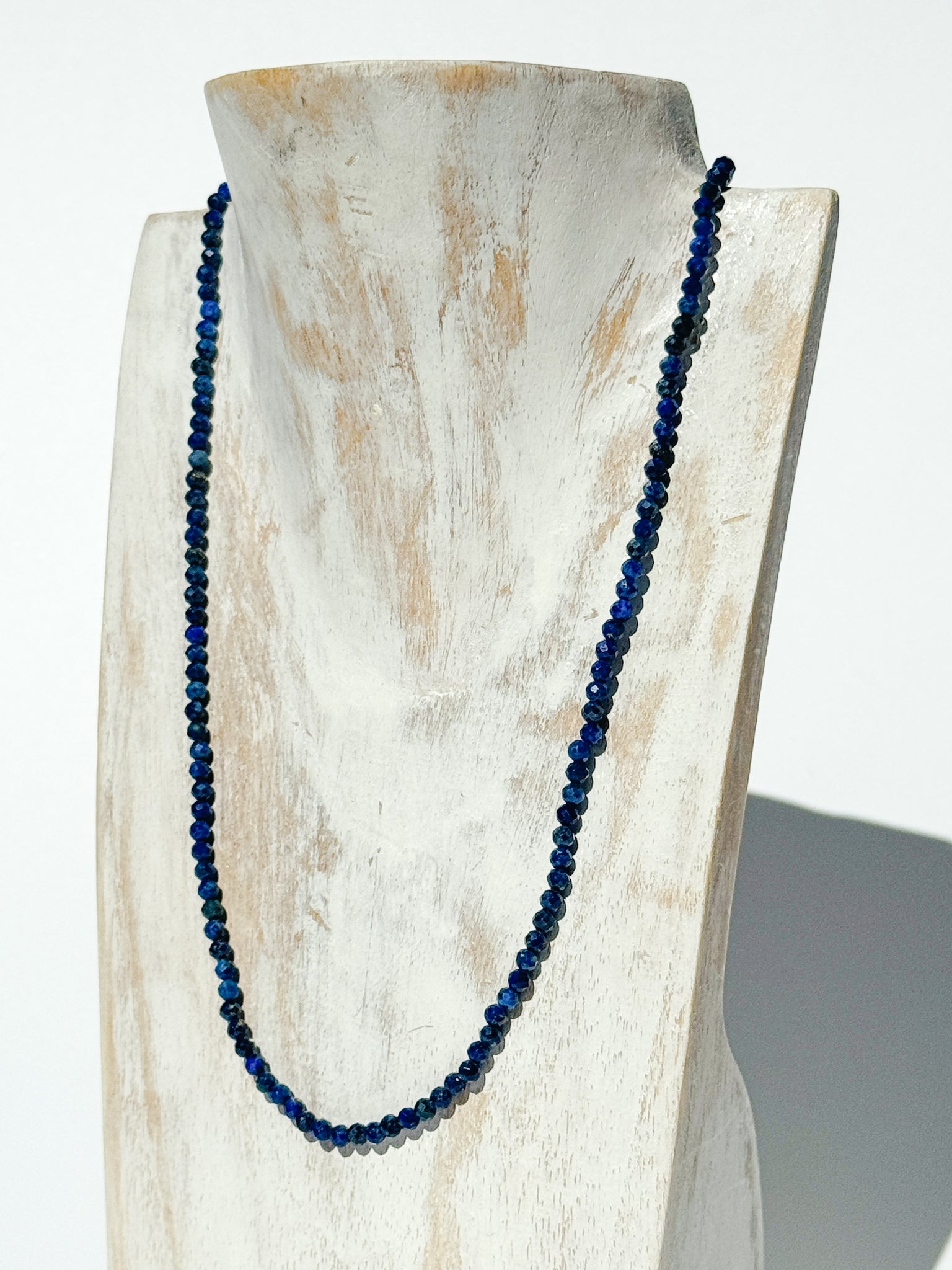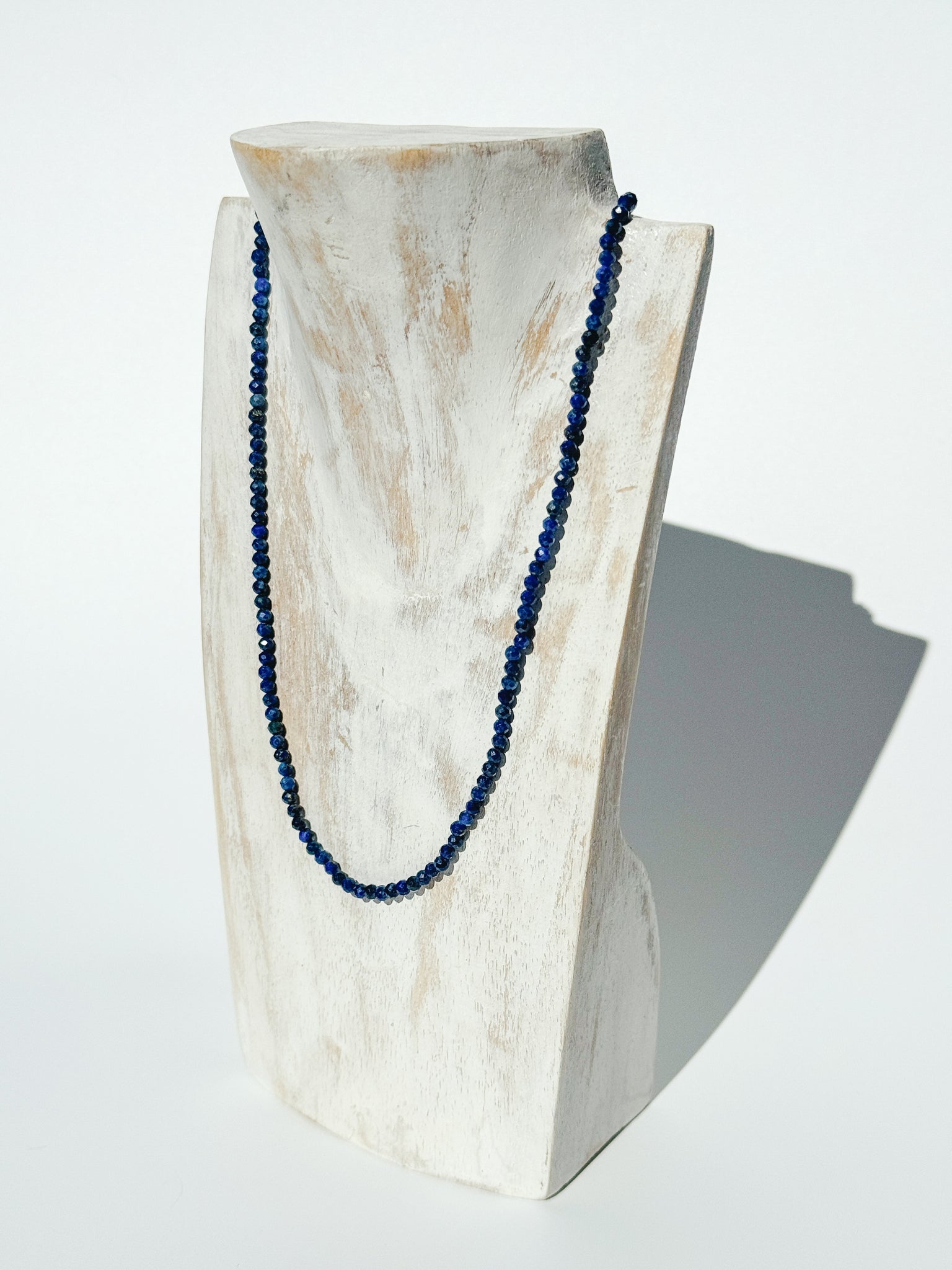 The Solace Choker – Sapphire embodies timeless elegance and truth. Handcrafted with 3 mm faceted Sapphire gemstones, each midnight-blue bead reflects serenity, strength, and sacred insight. Refined yet grounding, this piece calms the mind, sharpens intuition, and anchors the spirit in purpose and integrity.