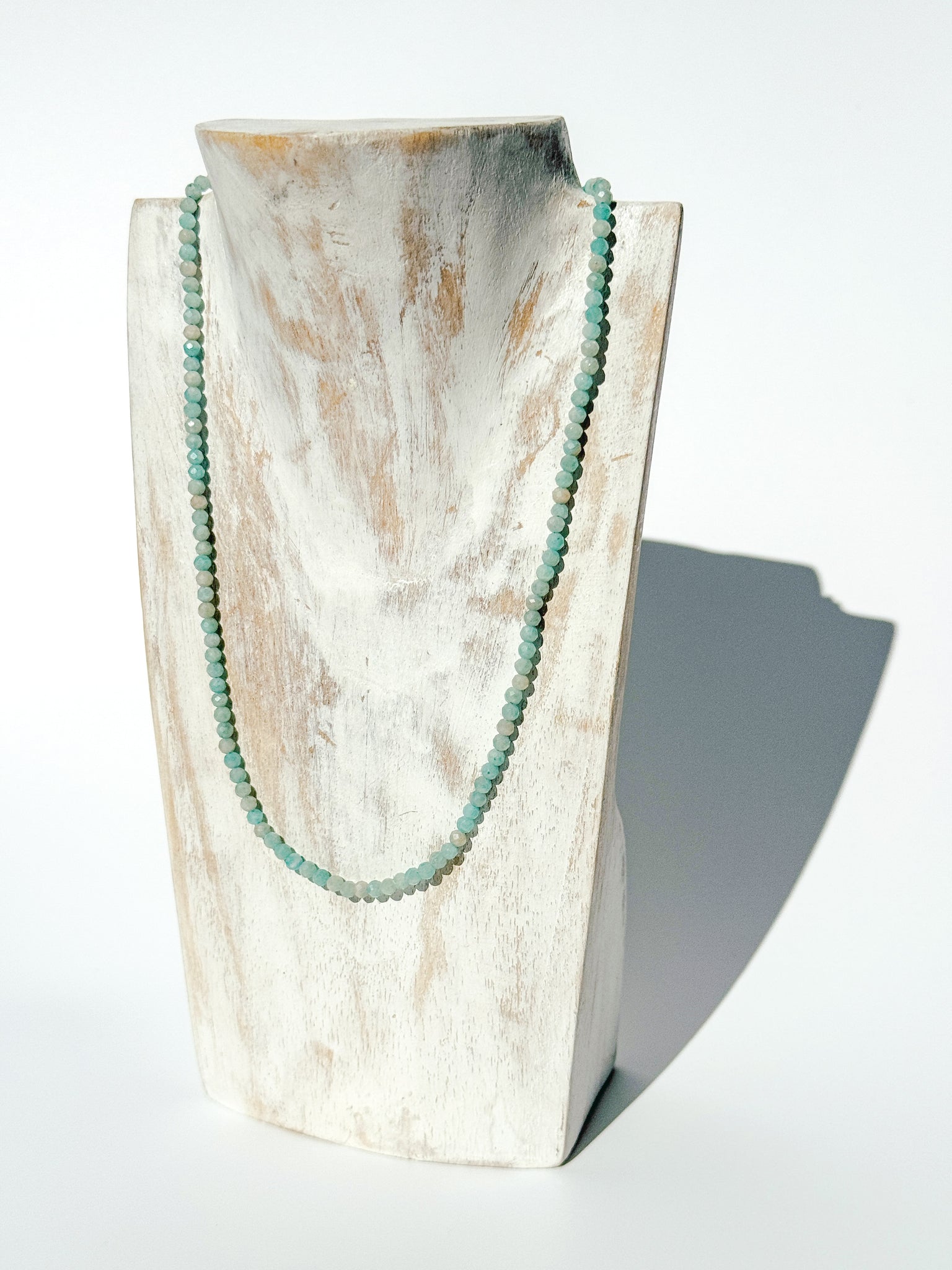 The Solace Choker – Blue Amazonite captures the soft, soothing essence of open skies and still waters. Handcrafted with 3 mm faceted Blue Amazonite gemstones, this Brazilian variety glows in gentle aqua tones, bringing lightness, peace, and expressive flow to your everyday rhythm. Elegant yet effortless, it’s a minimalist statement of serenity — designed to remind you that calm communication begins from within.