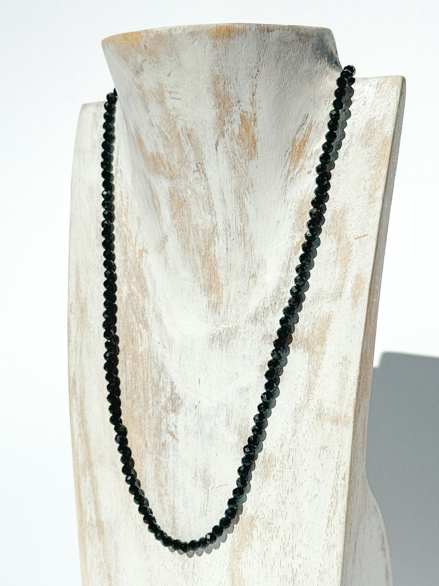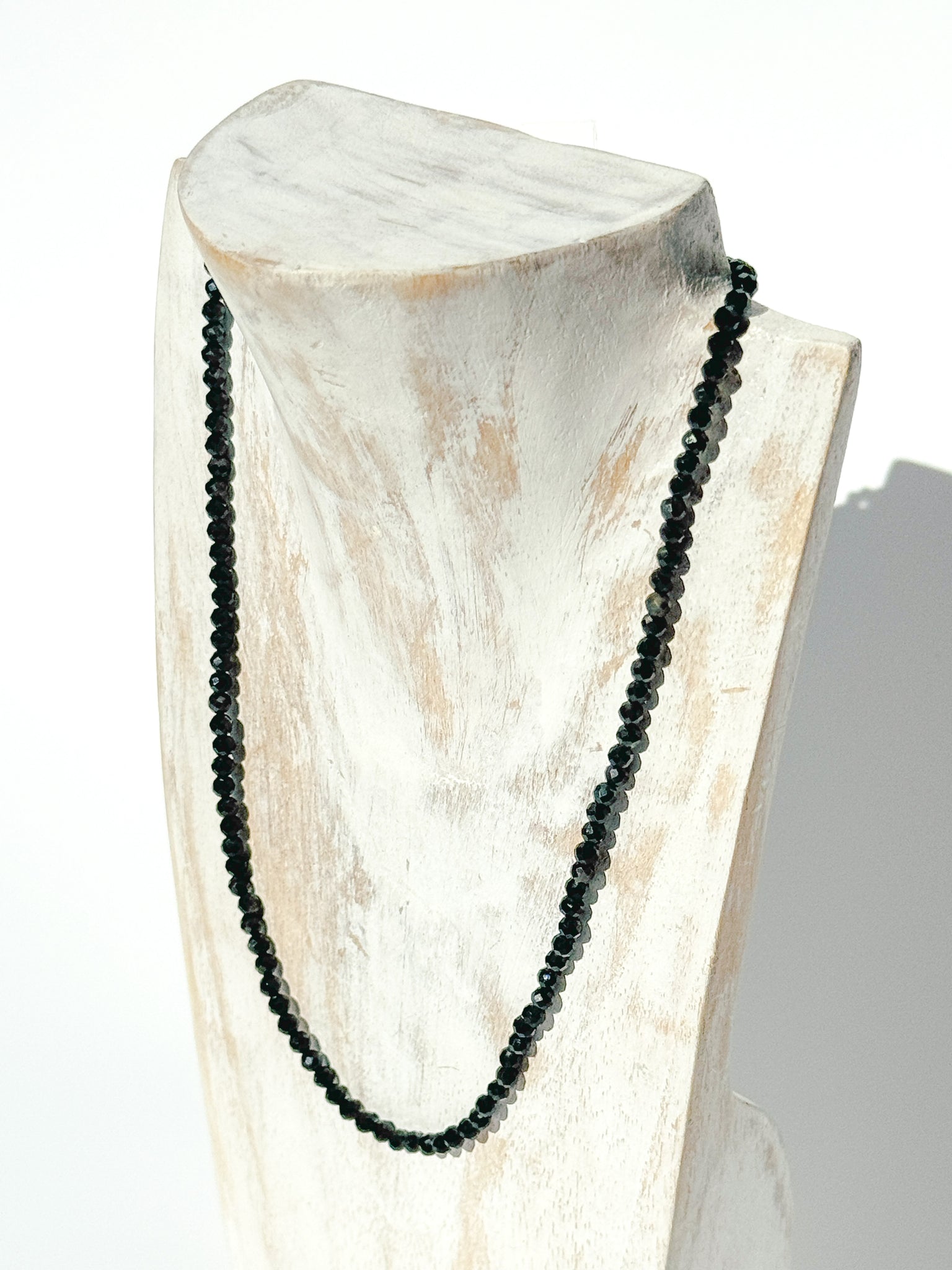 The Solace Choker – Golden Obsidian merges strength with subtle radiance. Handcrafted with 3 mm faceted Golden Obsidian gemstones, this sleek black crystal reveals flashes of golden sheen beneath the surface — a symbol of inner power illuminated by awareness. Elegant and understated, it’s a minimalist talisman of grounded confidence and energetic protection.
