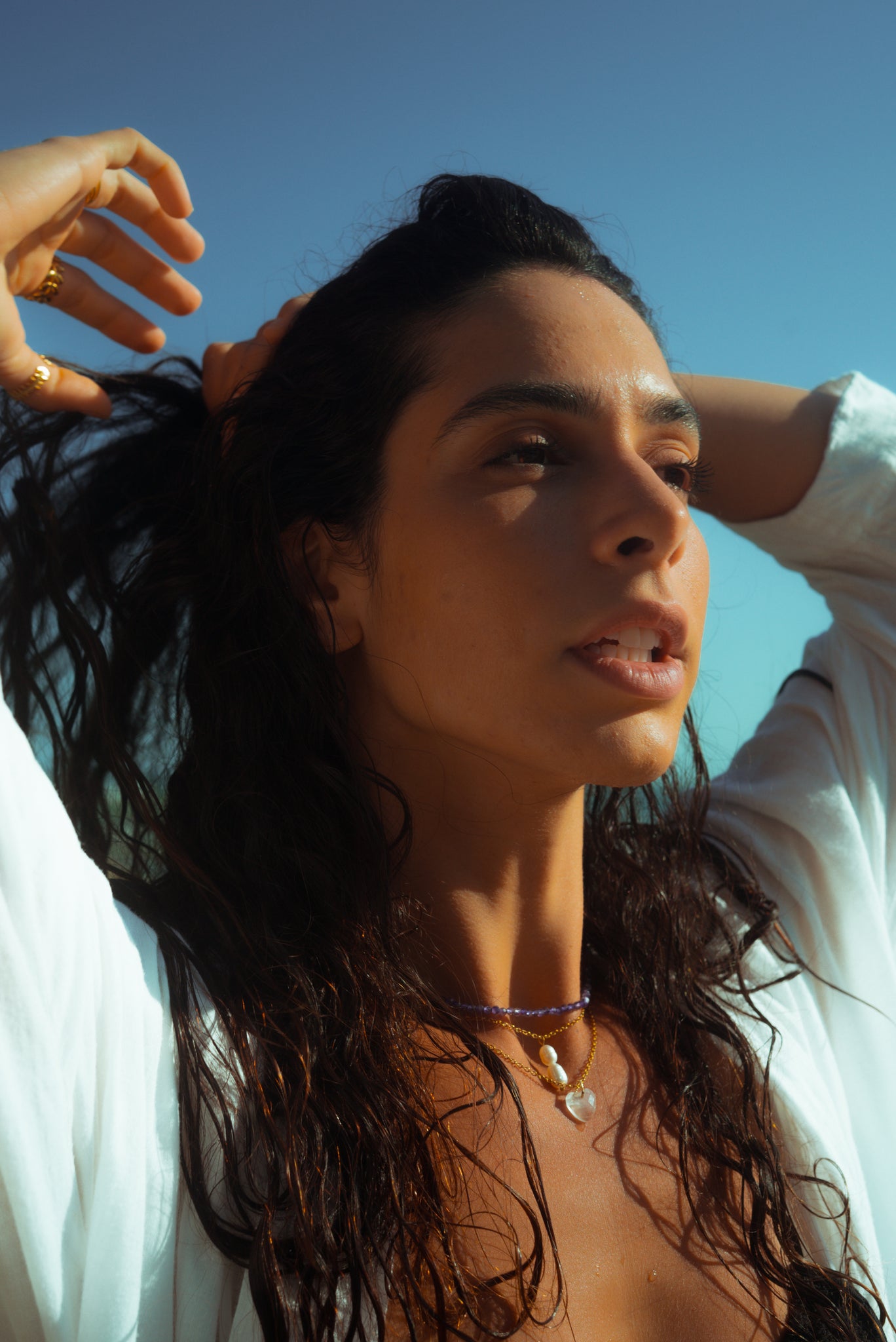 Finished with your choice of 18 K gold-plated or pure stainless steel clasp, this choker is waterproof, sweat-proof, and hypoallergenic — designed to move effortlessly through your rituals, routines, and adventures.