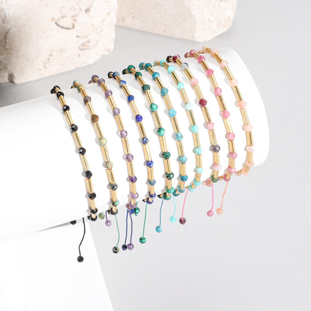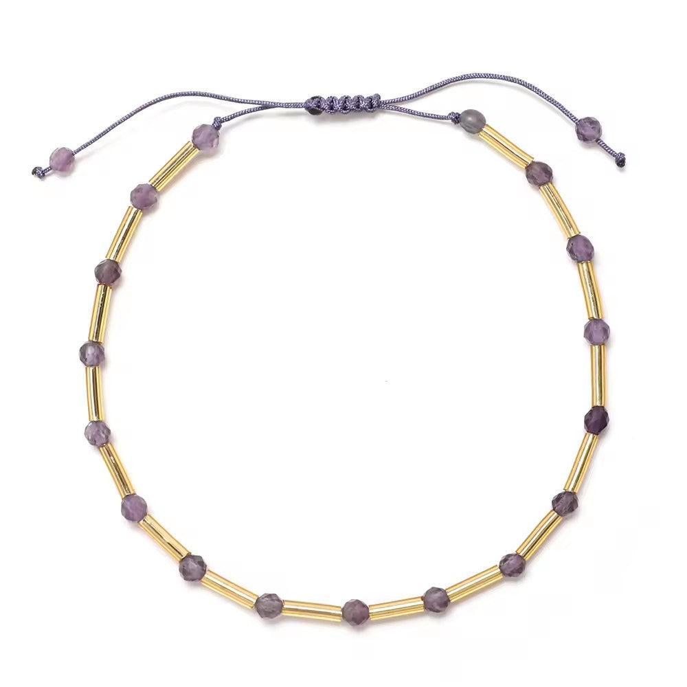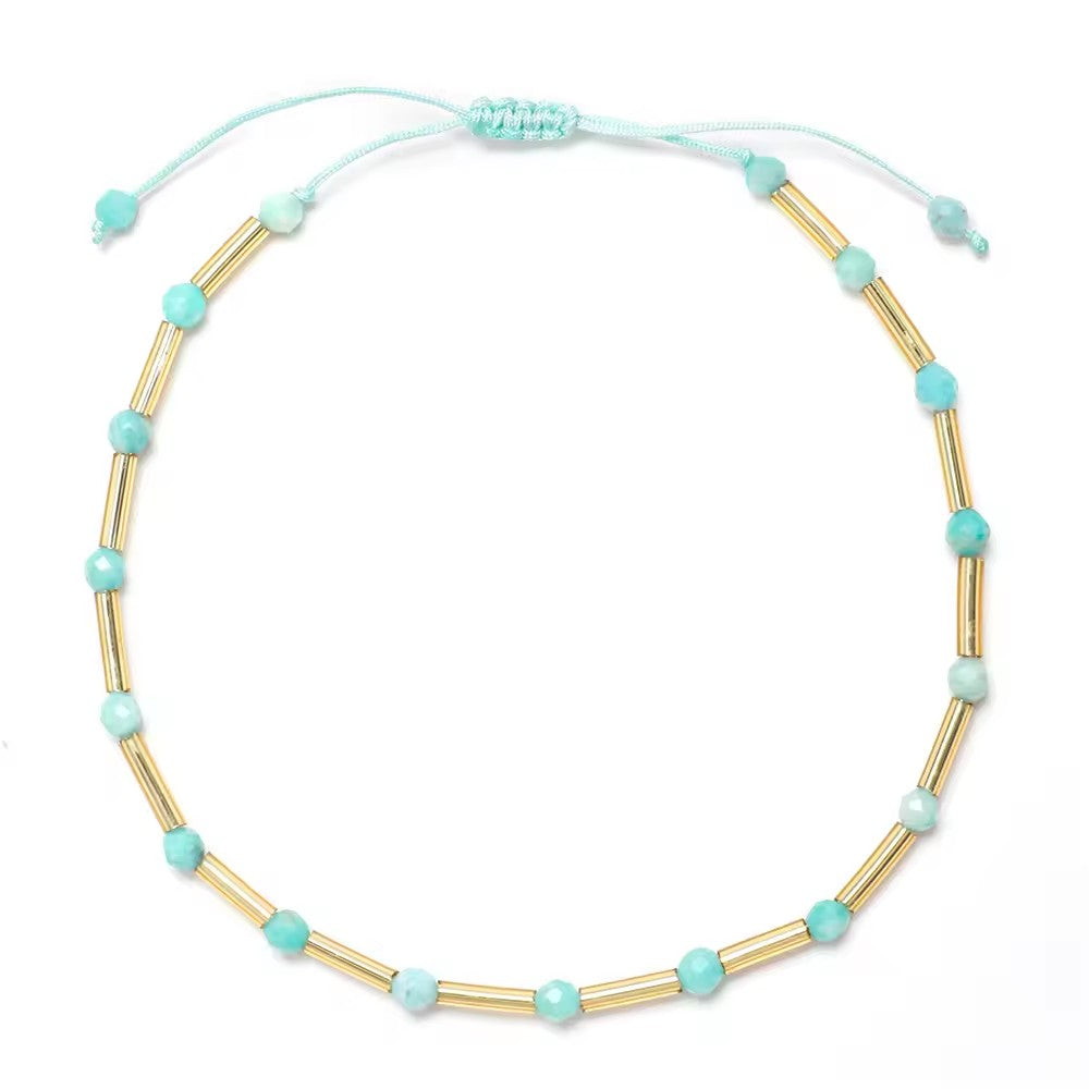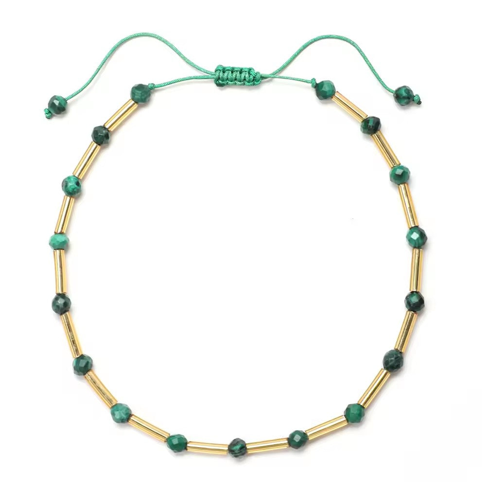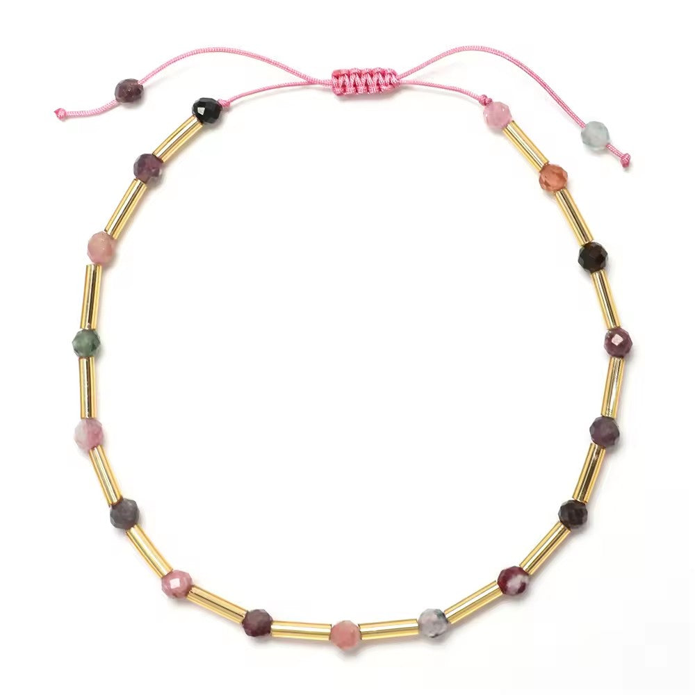 This beautiful bracelet is carefully handcrafted using natural crystal beads and delicate golden tube accents, creating a vibrant and elegant piece designed for everyday wear.